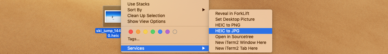 Do you want to have option to convert HEIC to JPEG in context menu? You can create convertor in Automator app yourself and for free, or you can proceed right to the download . (Only for Mac OS X)