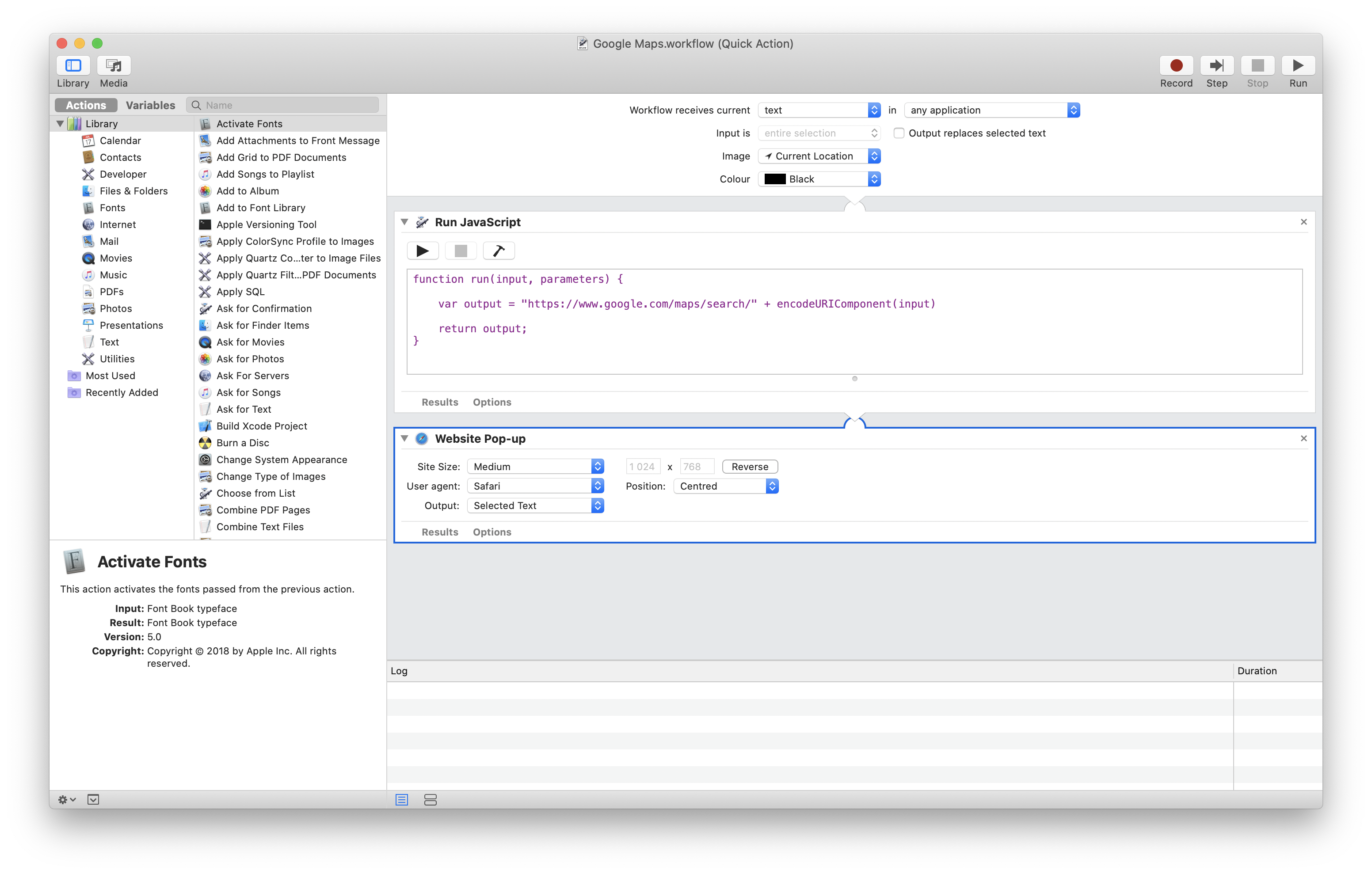 - Now under Library -> Utilities double click or drag from left pane Run JavaScript.