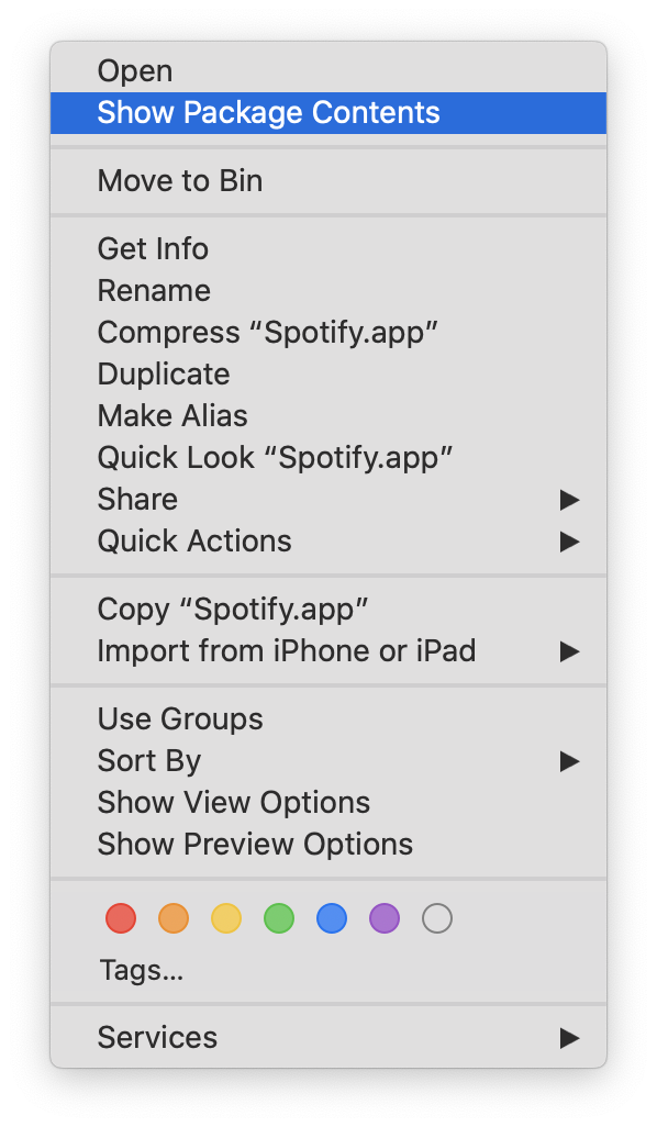 - Right-click Spotify.app -> select show package content
